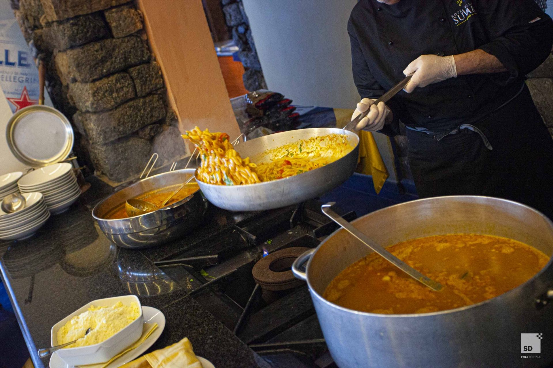 È inteso come un quick lunch (pranzo veloce) dove vengono proposte a buffet, in una calorosa sala con vista panoramica sul mare, una serie di deliziose pietanze: grigliate di verdure, insalata pantesca, focacce, pizze, una carrellata di antipasti misti, primi saltati a vista, frutta e gelato.