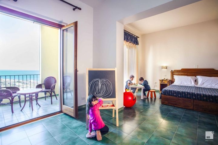 Het Pantelleria Resort, een 4-sterrenresort op het eiland Pantelleria, heeft twee-, drie- en vierpersoonskamers die zijn verdeeld over het centrale lichaam en het panoramische lichaam, gelegen in het hoogste deel van de structuur.