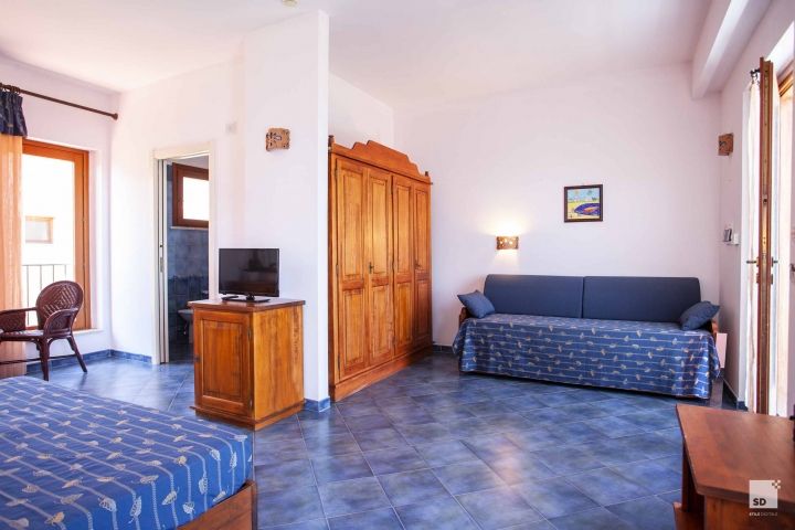 Verhoog uw comfortniveau en profiteer van de exclusieve voordelen die voor u zijn gereserveerd in de onlangs gerenoveerde Junior Suite. Laat u veroveren door de heldere en delicate tonen, het prachtige uitzicht op zee en het comfort van 2 aangrenzende kamers, groot in het complex van 37 m² en uitgerust met een tweepersoons slaapkamer en 2 eenpersoonsbedden, ideaal voor het paar of het gezin dat zijn vakantie wil doorbrengen met maximaal comfort (biedt plaats aan 2 tot 4 personen). De Junior Suite biedt vele extra diensten die uw verblijf nog aangenamer maken: privéterras met comfortabele stoelen, uitzicht op de glinsterende zee van Pantelleria, een zeer comfortabel bed met dubbele kussens voor een regenererende rust, koffiezetapparaat; Er zijn ook: een lcd-satelliettelevisie met digitale kanalen, een telefoon met directe buitenlijn, regelbare airconditioning, een kluisje en een eigen badkamer.